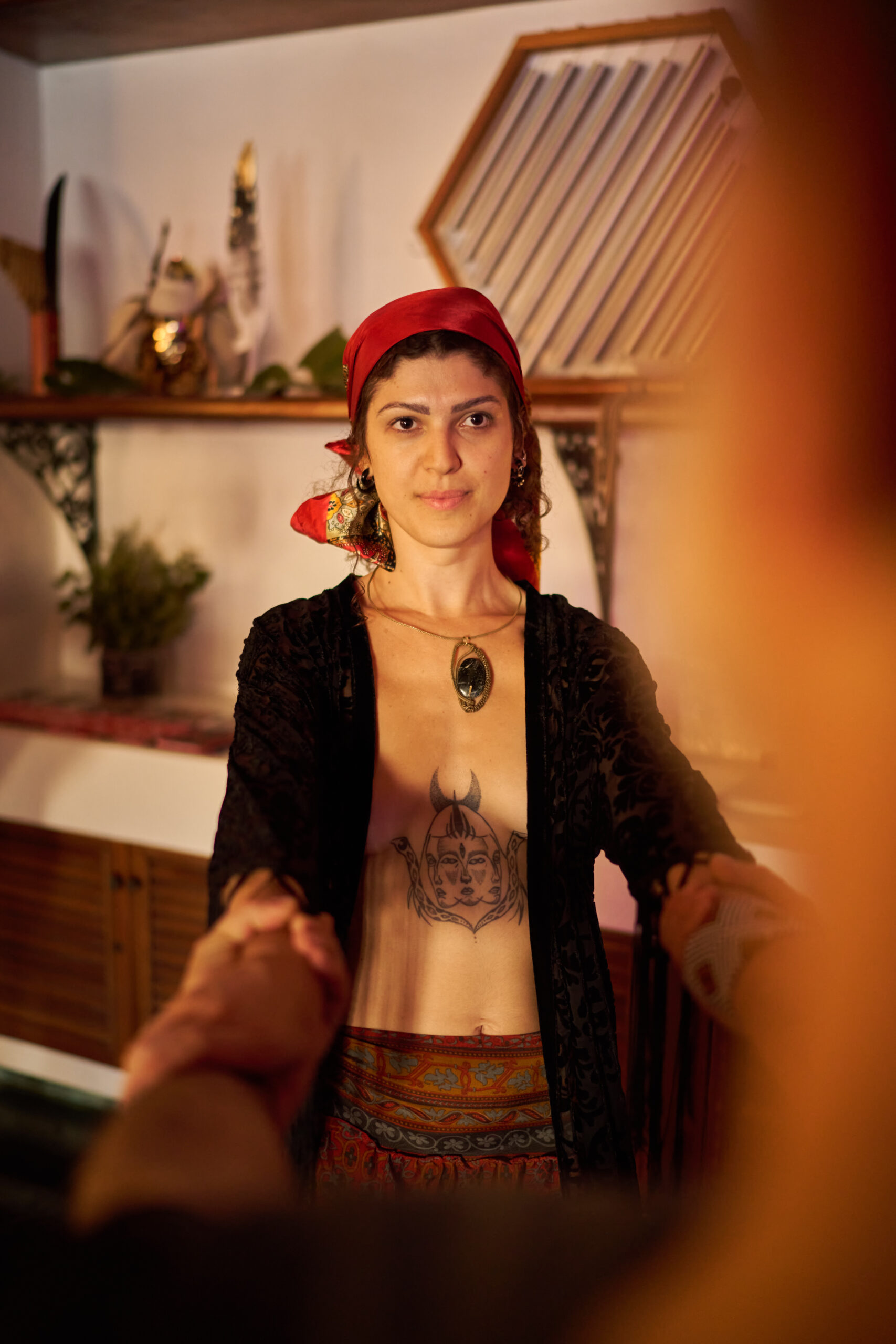 Com traços de dança egípcia e oriental fusion e laboratório pélvico para dar vazão a memórias uterinas e se conectar com toda sua potência expressiva e criativa. Conectando movimentos corporais com símbolos de proteção e ativação energética como códigos ancestrais.