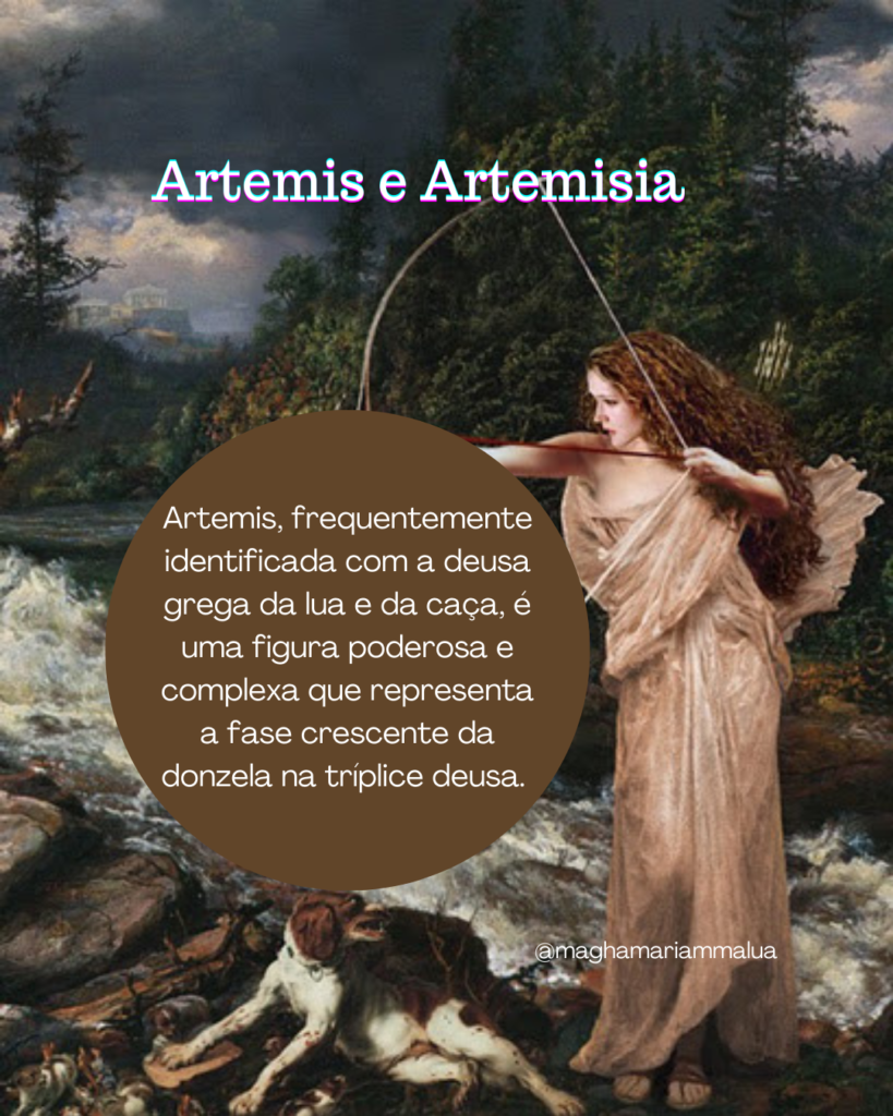 Artemis, frequentemente identificada com a deusa grega da lua e da caça, é uma figura poderosa e complexa que representa a fase crescente da donzela na tríplice deusa.