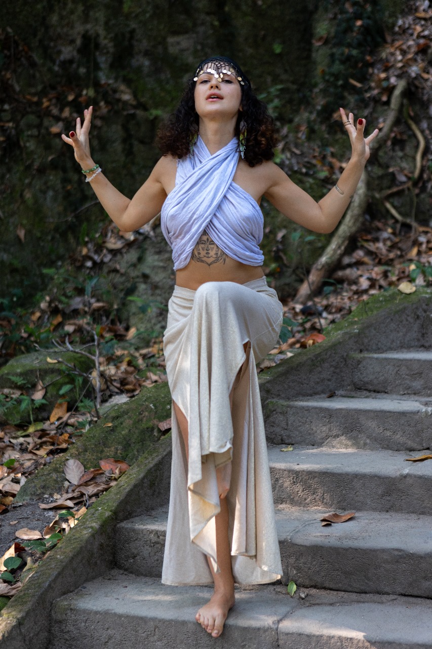Com traços de dança egípcia e oriental fusion e laboratório pélvico para dar vazão a memórias uterinas e se conectar com toda sua potência expressiva e criativa. Conectando movimentos corporais com símbolos de proteção e ativação energética como códigos ancestrais.